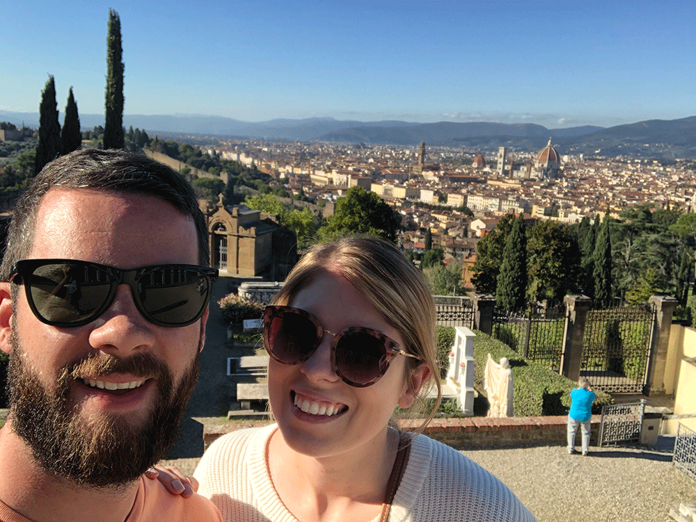 Sarah and I both love to travel; this is us on our honeymoon in Florence.