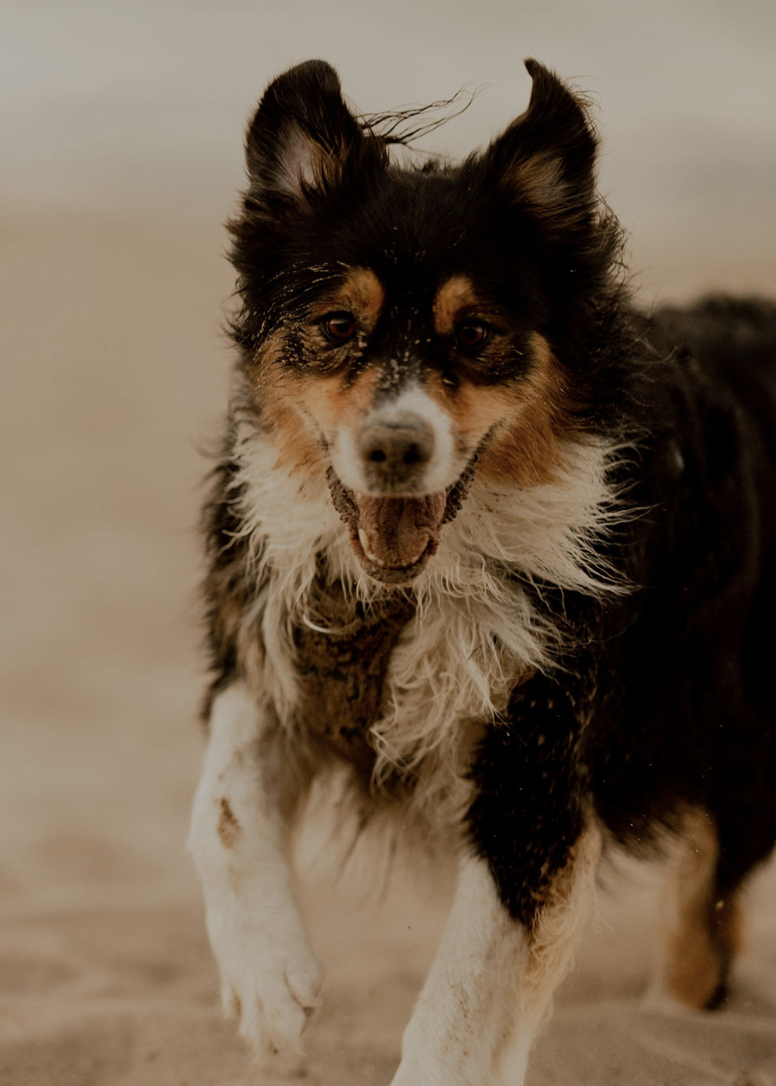 Our dog Ophie in her happy place running on the beach.