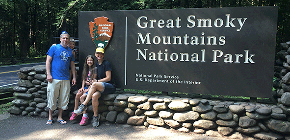 My wife Jessica and me, with our kids Felicity and Caleb at Great Smoky Mountains National Park in 2018.