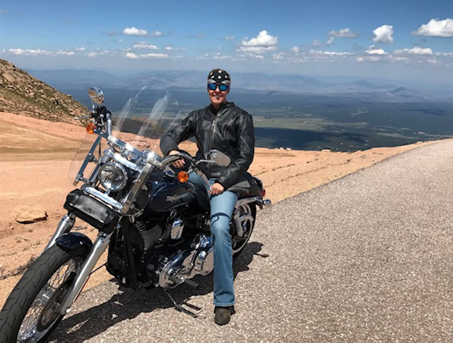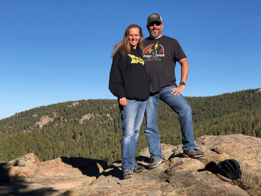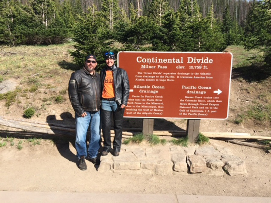 Jim and me on a bike trip to Estes Park in Colorado — this area is part of the Rocky Mountain National Forest.