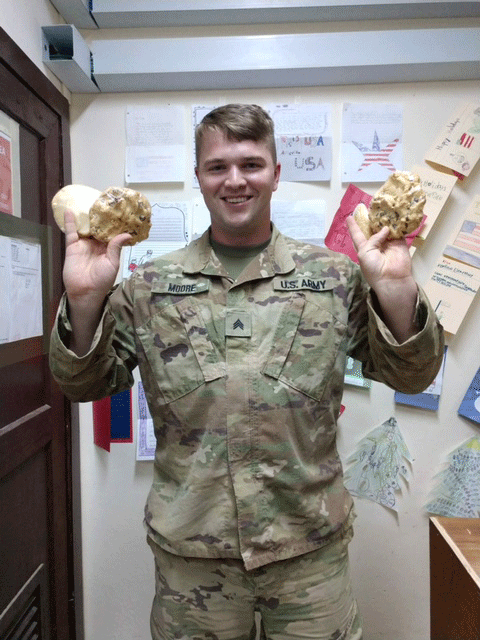 My son-in-law Justin, in 2018 while in Iraq — we sent him cookies from Pittsburgh's Nancy B's Bakery!
