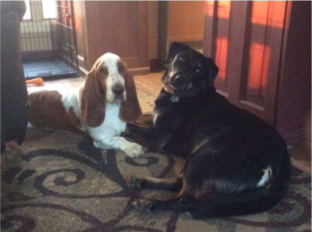 Our dogs Jess and Duke in the backyard at our new house.